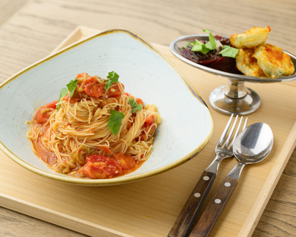 越田農園の完熟トマトと焼きナスのカペリーニ