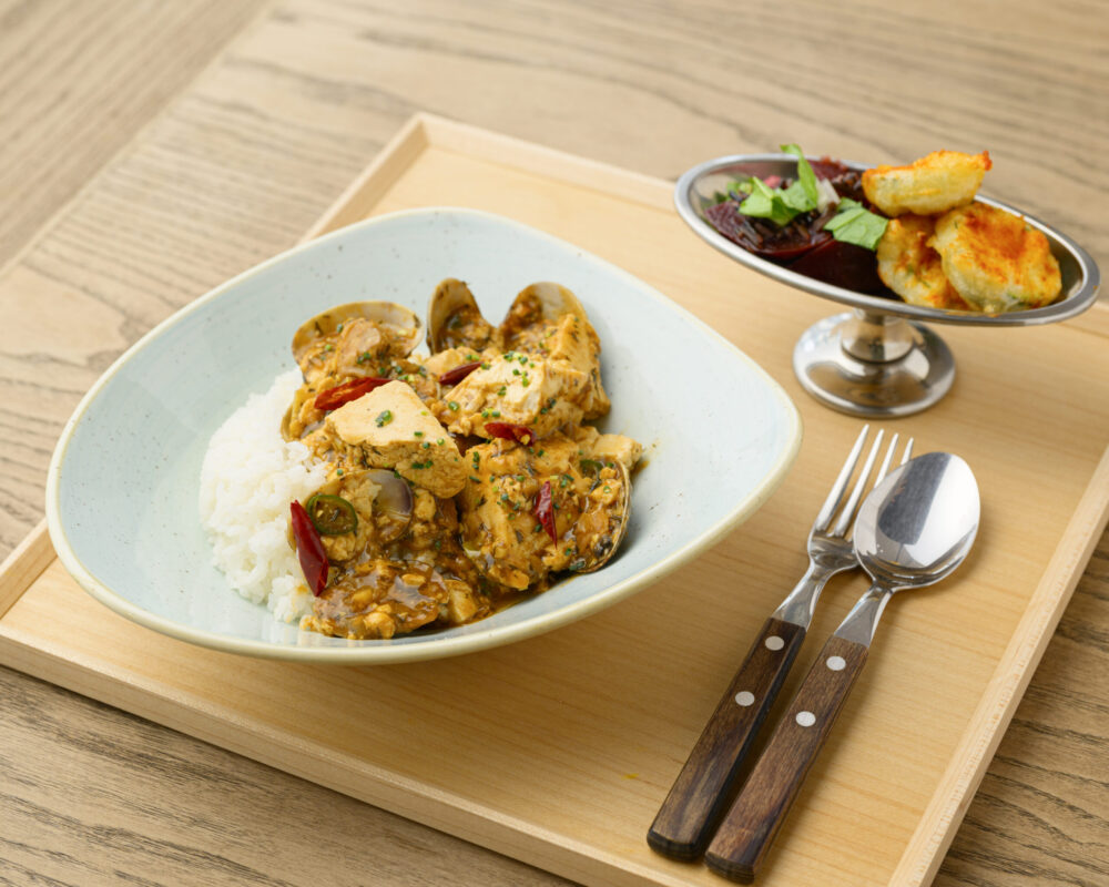 驚くほど大粒のアサリを夏らしくピリ辛な麻婆豆腐に仕上げました。大崎上島のアサリにはたくさんの物語が詰まっています。その物語に想いをはせながら、ぜひお召し上がりください。