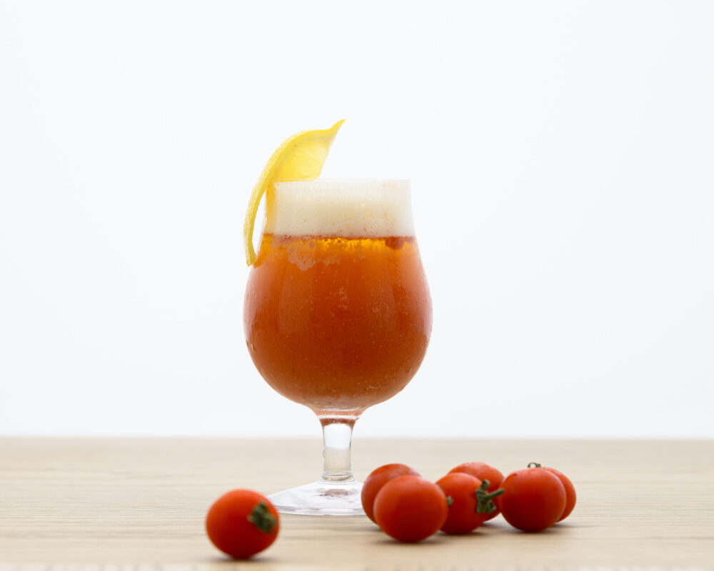 生のトマトをビールと割った爽やかなレッドアイ。少し若めのトマトを使うことで、甘すぎず爽やかなカクテルになりました。