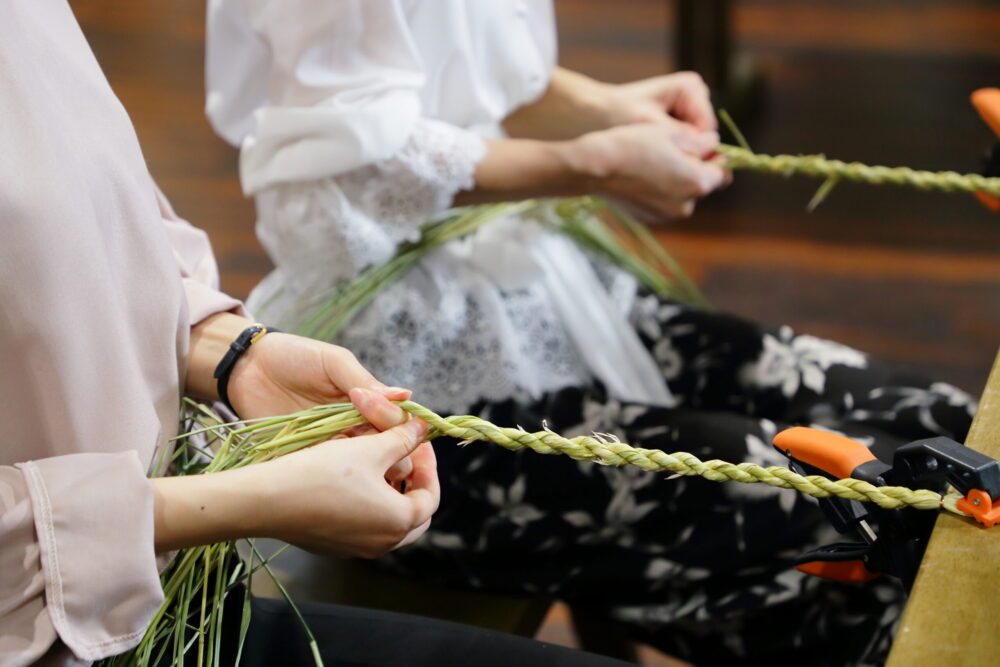 町内で栽培したしめ縄専用のワラを使って、インテリアになるしめ飾りを作ります。