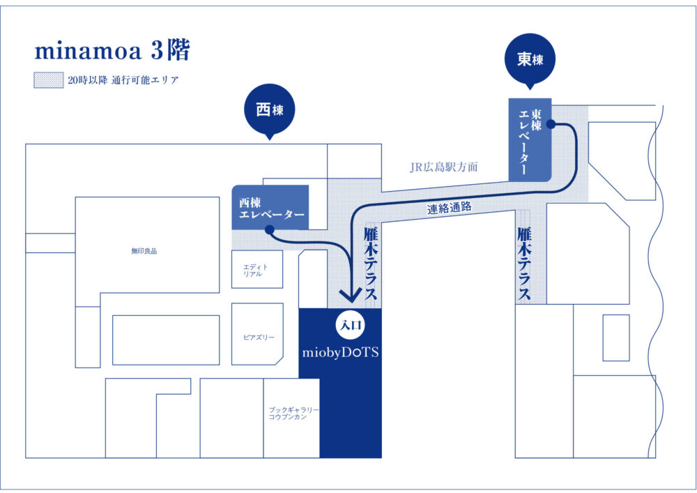20時以降は、他フロアの閉店に伴い、館内の通行ルートが一部限られます。